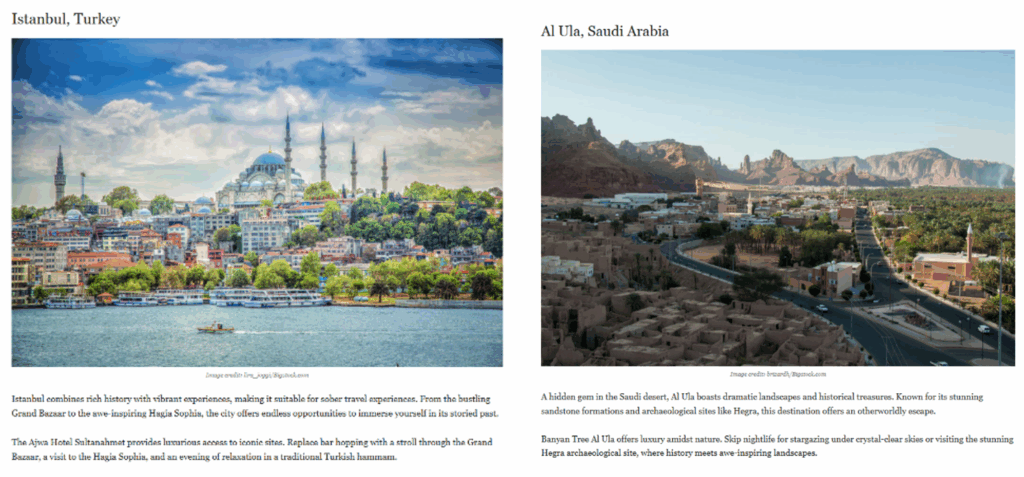 Tapping into Dry January and the rising sober-curious movement, this release showcased alcohol-free destinations curated by Rooh Travel customers or recommended by Walid.