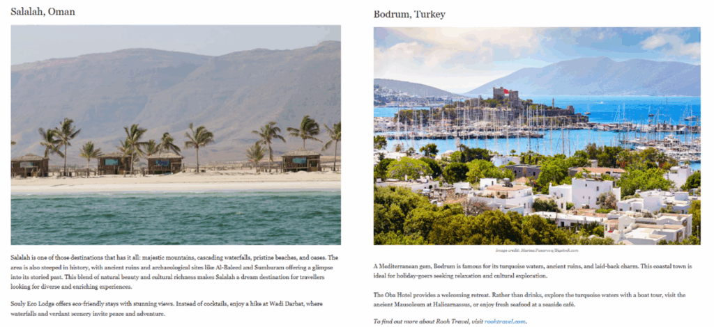 - Inclusion in travel round-ups and trend stories.