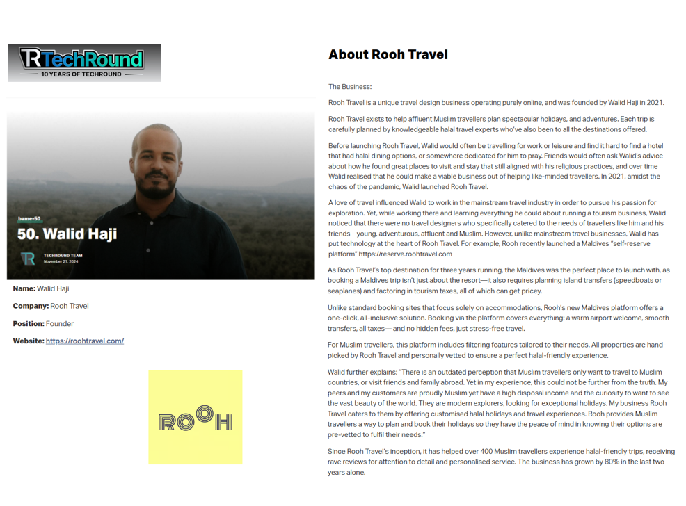 - Tech and travel innovation features – highlighting how Rooh Travel sits at the intersection of travel personalisation, faith-aligned experiences, and inclusive tech.