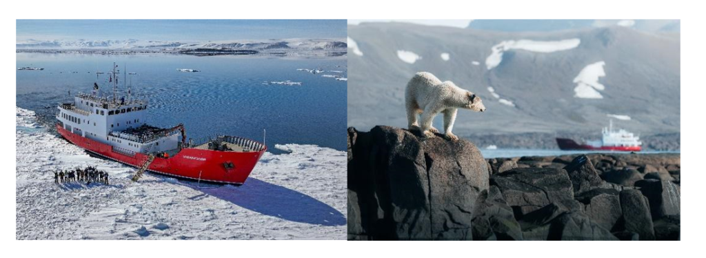 - Image 2 – Polar bear and Vikingfjord ship in Bjýrnsundet, Svalbard. Photographer Giancarlo Gallinoro. Credit Secret Atlas.