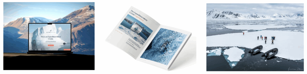 - Image 2 – Secret Atlas’ new brochure showcasing expeditions to Svalbard, Greenland and the Antarctic.