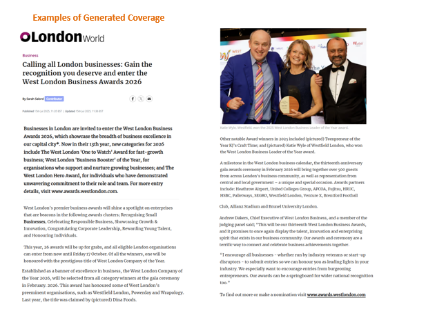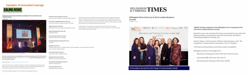 - Coverage appeared across notable business titles, local authority news feeds, chamber networks, and sector-specific platforms — significantly expanding awareness of the Awards beyond the core West London business community.